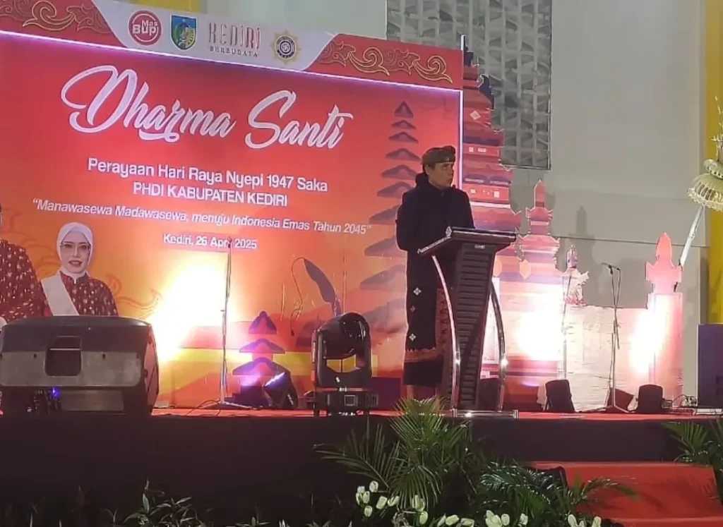 Biro Pemerintahan dan Kesejahteraan Rakyat yang diwakili oleh Analis Kebijakan Ahli Muda menjadi pendharmawacana di Acara Dharma Santhi Kabupaten Kediri Jatim pada hari Minggu, 26 April 2025