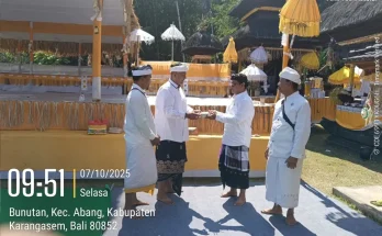 Biro Pemerintahan dan Kesejahteraan Rakyat menghadiri Karya Ngusaba Ageng bertempat di Desa Adat Gulinten, Abang Karangasem pada hari Selasa, 7 Oktober 2025