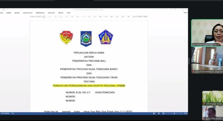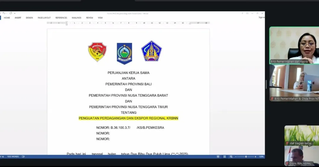 Biro Pemerintahan dan Kesejahteraan Rakyat melaksanakan rapat pembahasan Perjanjian Kerjasama KRBNN tentang penguatan perdagangan dan ekspor regional KRBNN secara daring melalui zoom meeting pada hari Rabu, 10 Desember 2025