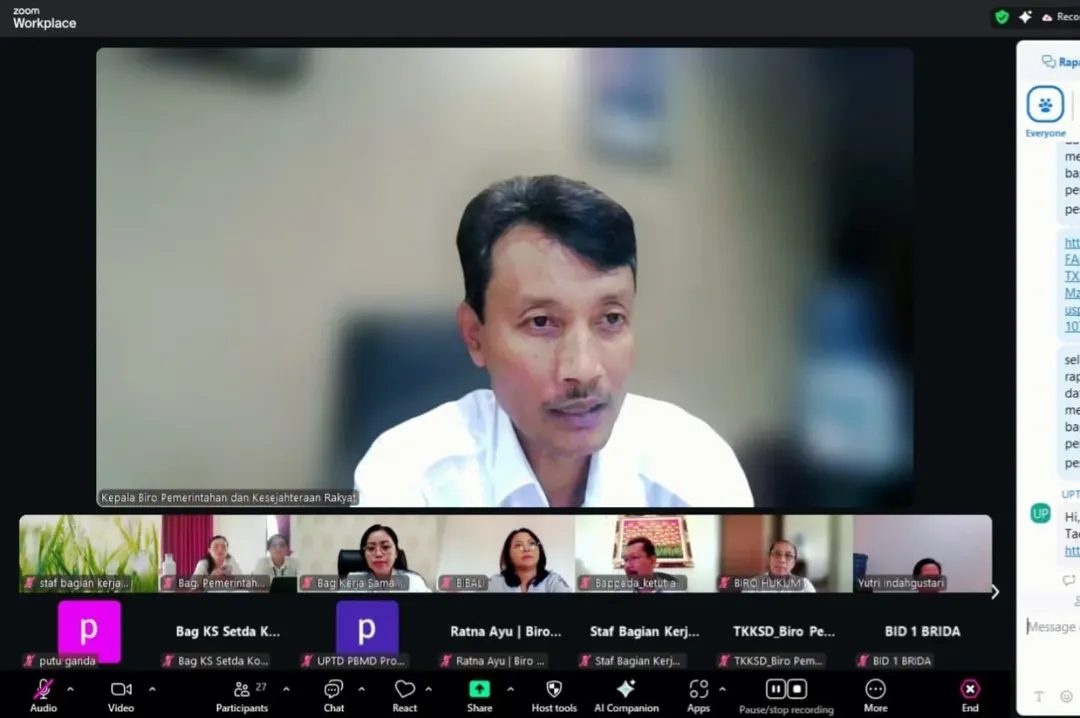 Biro Pemerintahan dan Kesejahteraan Rakyat memfasilitasi Tindak lanjut rapat pembahasan draft perjanjian kerja sama tentang Pengelolaan Sampah di TPA Bangli secara daring melalui zoom meeting pada hari Rabu, 7 Januari 2026