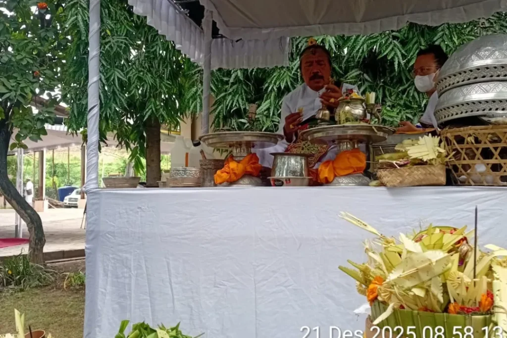 Biro Pemerintahan dan Kesejahteraan Rakyat menghadiri Upacara Guru Piduka dan Pecaruan yang di pusatkan TPA Suwung Denpasar, dilanjutkan ke Pura Sakenan dan Segara Serangan Denpasar pada hari Minggu, 21 Desember 2025