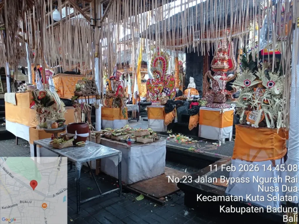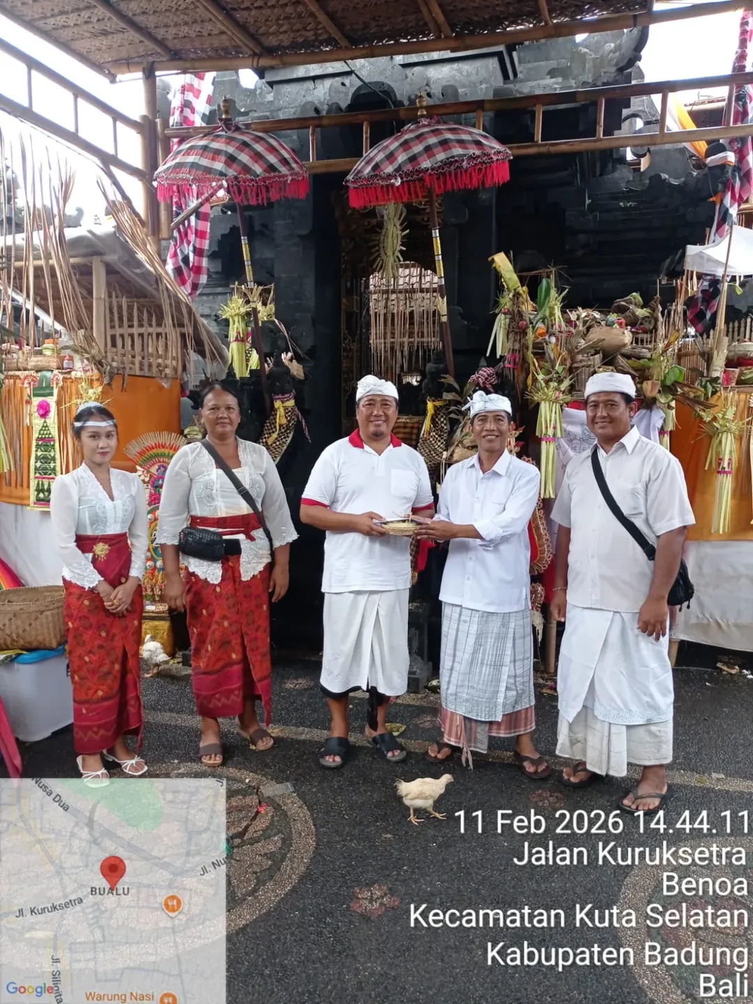 Biro Pemerintahan dan Kesejahteraan Rakyat menghadiri Upacara Karya Mamungkah, Ngenteg Linggih, Nila Pati lan Padudusan Wrespati Kalpa Agung Di Pura Pererepan Dalem Pemutih Lan Dalem Kapal Bualu Lingkungan Desa Adat Bualu Kelurahan Benoa Kecamatan Kuta Selatan, Kabupaten Badung pada hari Rabu, 11 Februari 2026