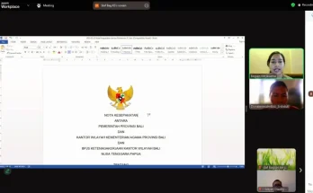 Biro Pemerintahan dan Kesejahteraan Rakyat melaksanakan rapat pembahasan naskah kesepakatan bersama antara Pemerintah Provinsi Bali dengan Pemerintah Kabupaten Kota se Bali tentang Pola Pembangunan Semesta Berencana Provinsi Bali secara daring …