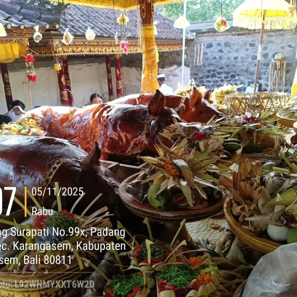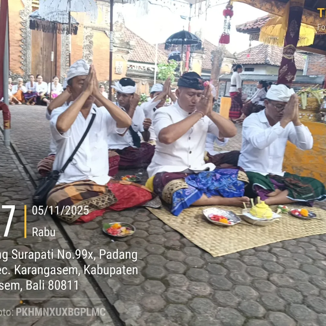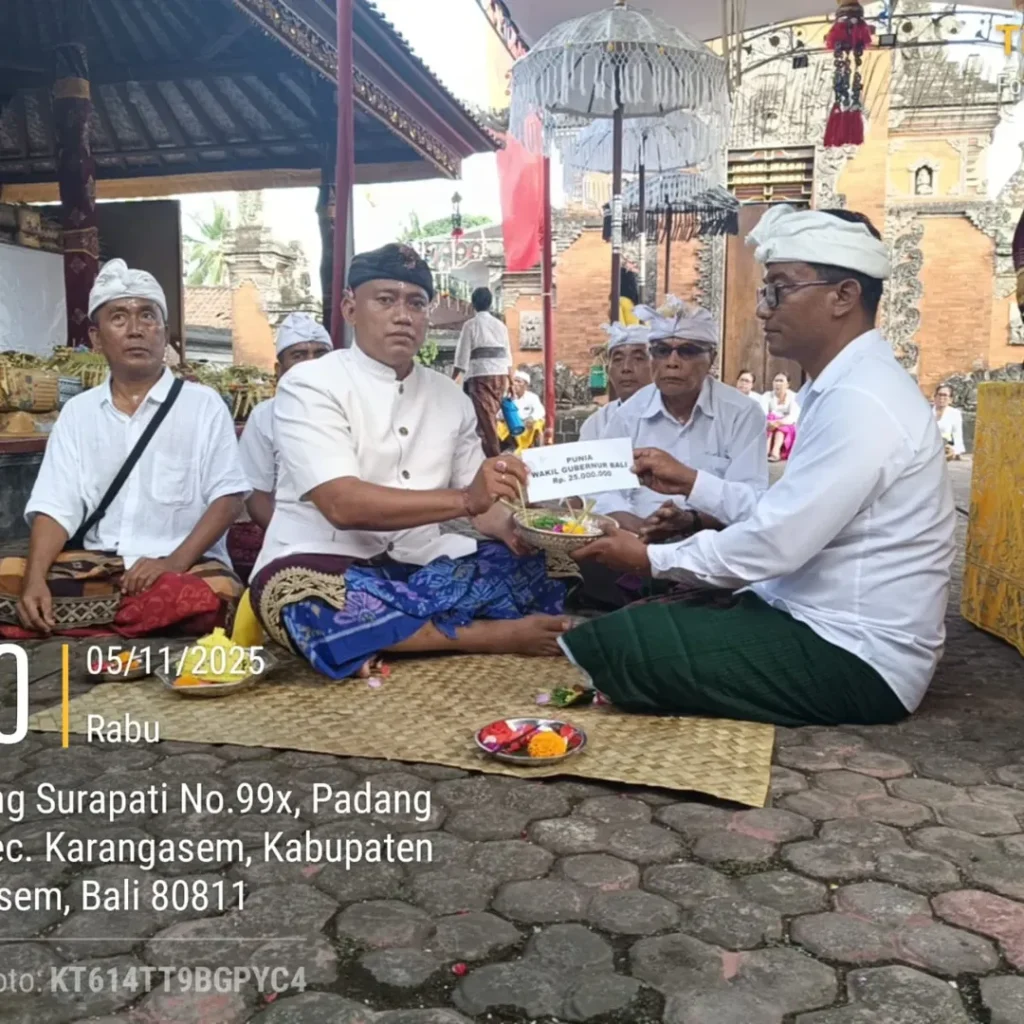 Biro Pemerintahan dan Kesejahteraan Rakyat Menghadiri Karya Aci Piodalan Ageng Pura Penataran Agung, Banjar Timbul, Padangkerta Kelod, Karangasem pada hari Rabu, 5 November 2025