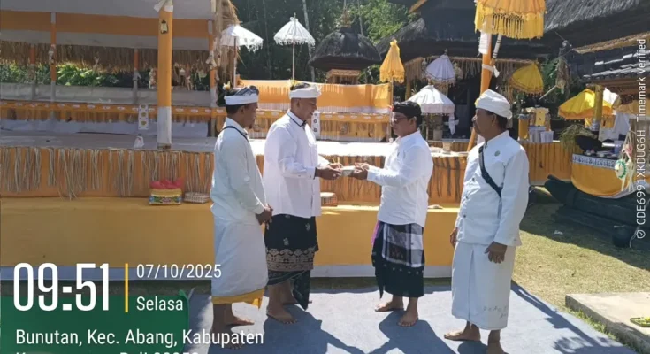 Biro Pemerintahan dan Kesejahteraan Rakyat menghadiri Karya Ngusaba Ageng bertempat di Desa Adat Gulinten, Abang Karangasem pada hari Selasa, 7 Oktober 2025