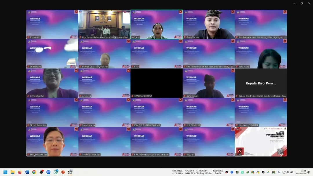 Biro Pemerintahan dan Kesejahteraan Rakyat melaksanakan kegiatan Webinar Seri Ke-17 Parade Pengembangan Kompetensi dengan tema: “Transformasi Tata Kelola Daerah Melalui Otonomi Daerah dan Kemitraan Strategis secara daring pada hari kamis, 19 Juni 2025