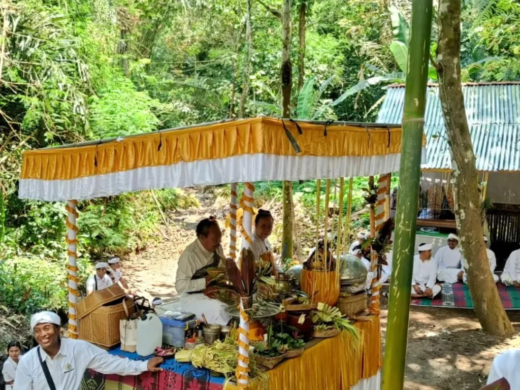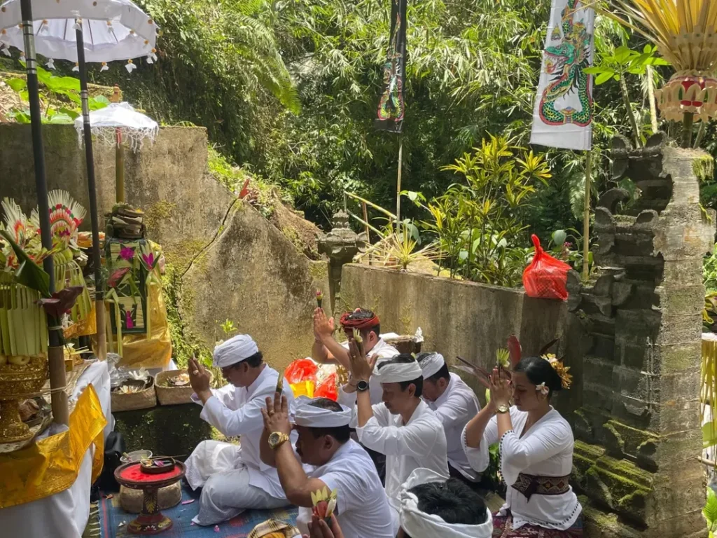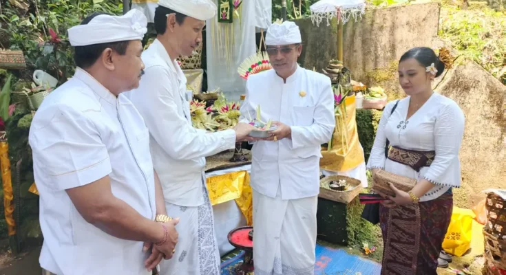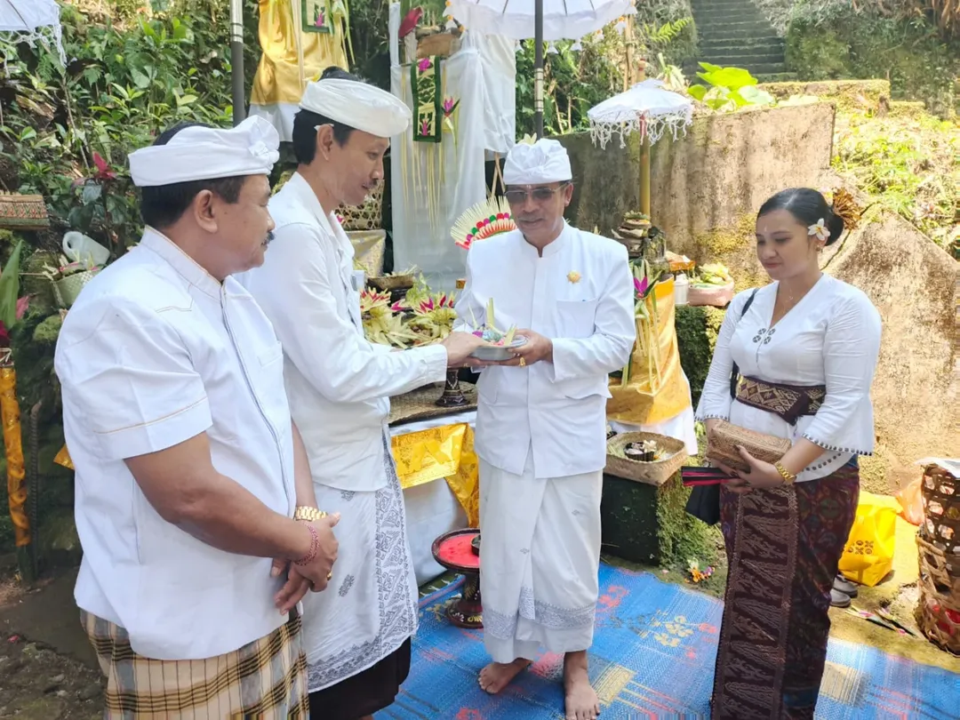 Kepala Biro Pemerintahan dan Kesejahteraan Rakyat beserta Kepala Bagian Kesejahteraan Rakyat dan Kepala Badan Riset dan Inovasi Daerah Provinsi Bali menghadiri uleman Upacara Piodalan Jelih di Cemara Geseng Pura Manik Mas Besakih pada hari Senin, 6 Oktober 2025