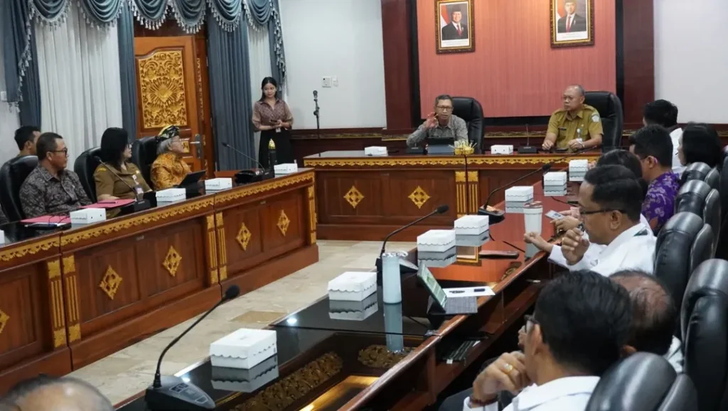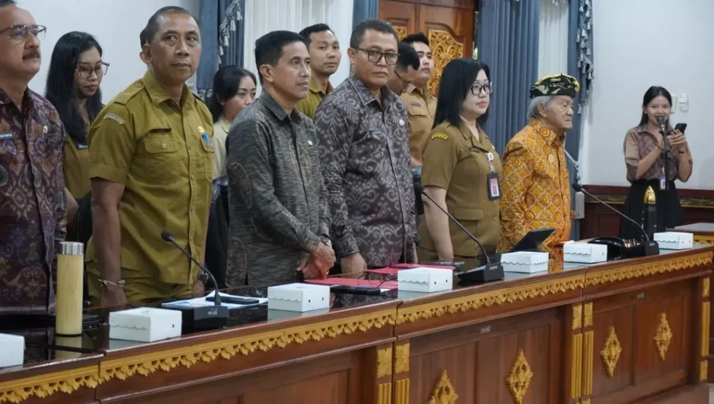 Kepala Biro Pemerintahan dan Kesejahteraan Rakyat (I Made Supartha, AP., MT) serta Kepala Bagian Kerjasama menghadiri Forum Perangkat Daerah dan Konsultasi Publik Sekretariat Daerah Provinsi Bali, bertempat di ruang rapat Wiswa Sabha Pratama Kantor Gubernur Bali pada hari Senin, 23 Februari 2026