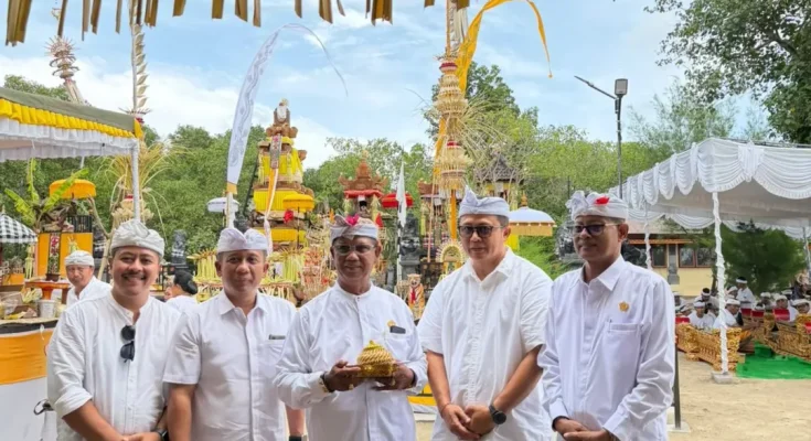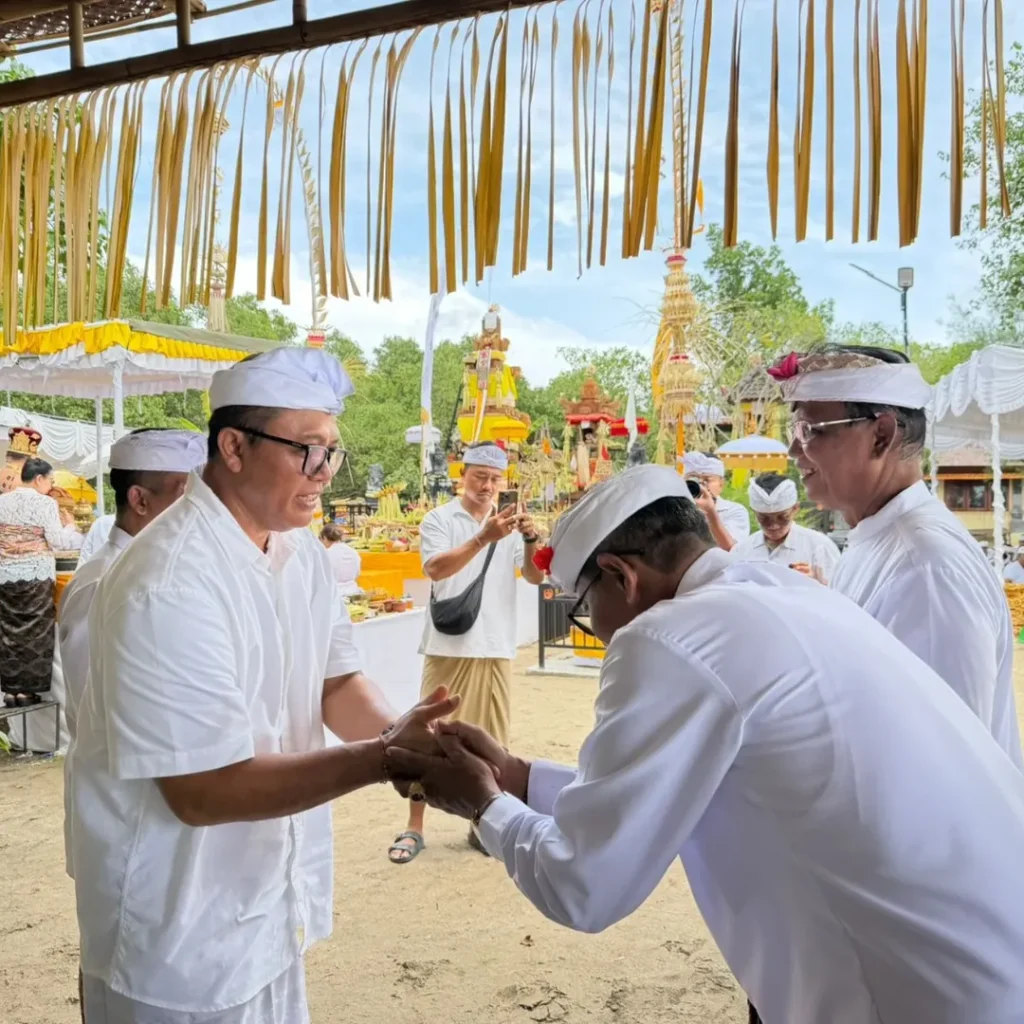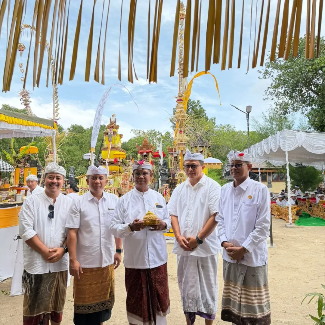 Kepala Biro Pemerintahan dan Kesejahteraan Rakyat menghadiri uleman Upacara Pecaruan, Melaspas, lan Mendem Pedagingan di Pura Segara Giri Wisesa