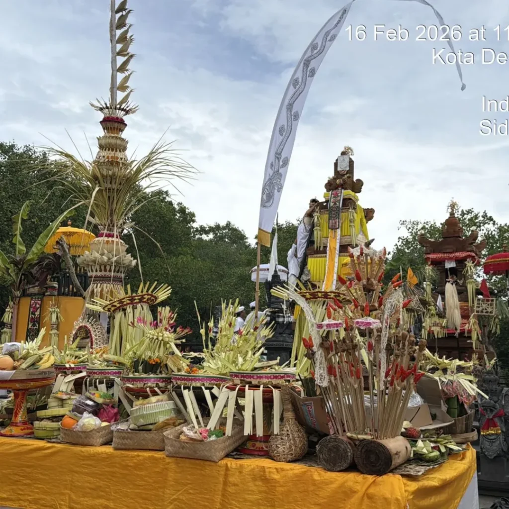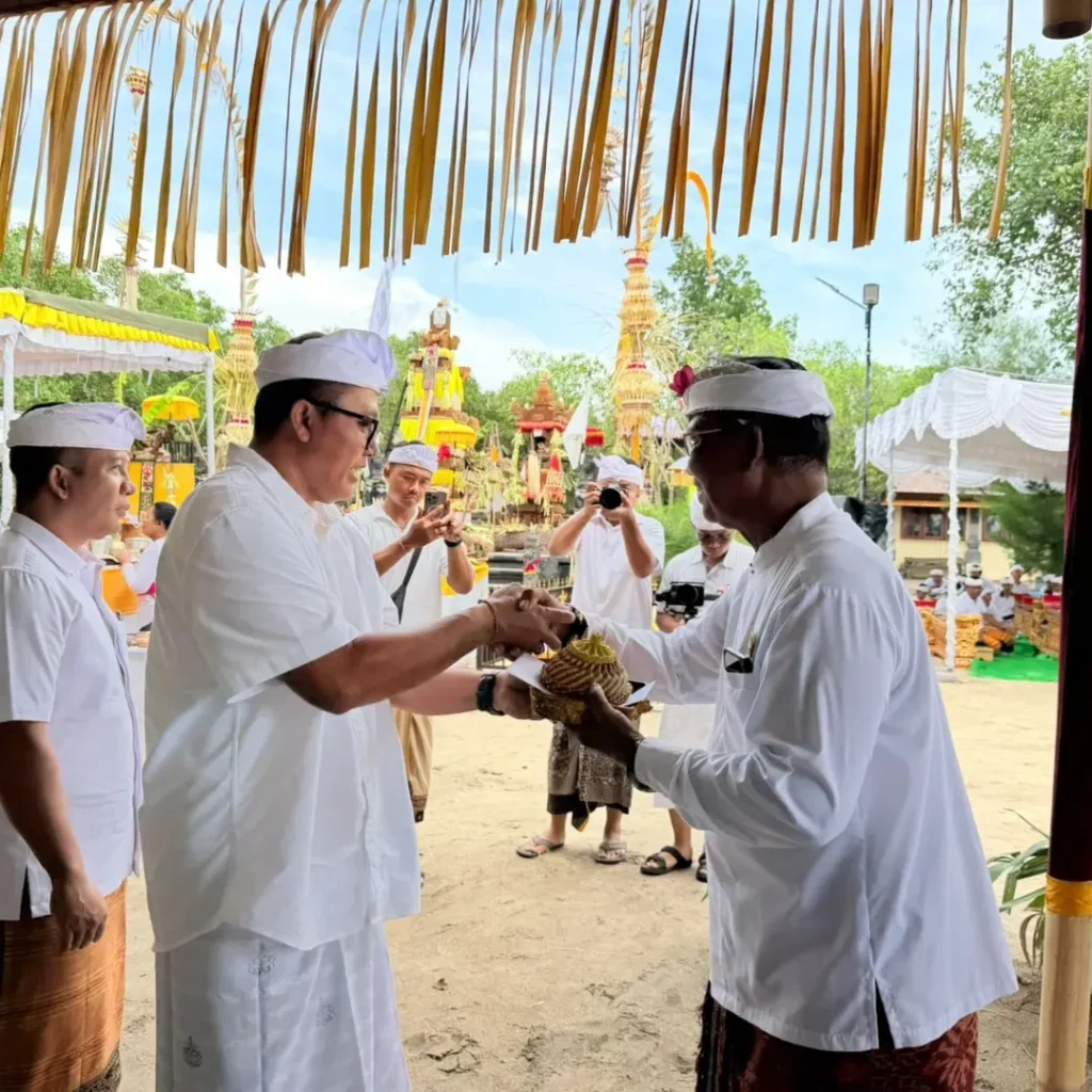 Kepala Biro Pemerintahan dan Kesejahteraan Rakyat (I Made Supartha, AP., MT) menghadiri uleman Upacara Pecaruan, Melaspas, lan Mendem Pedagingan di Pura Segara Giri Wisesa bertempat di Pantai Muntig Siokan Sidakarya pada hari Senin, 16 Februari 2026