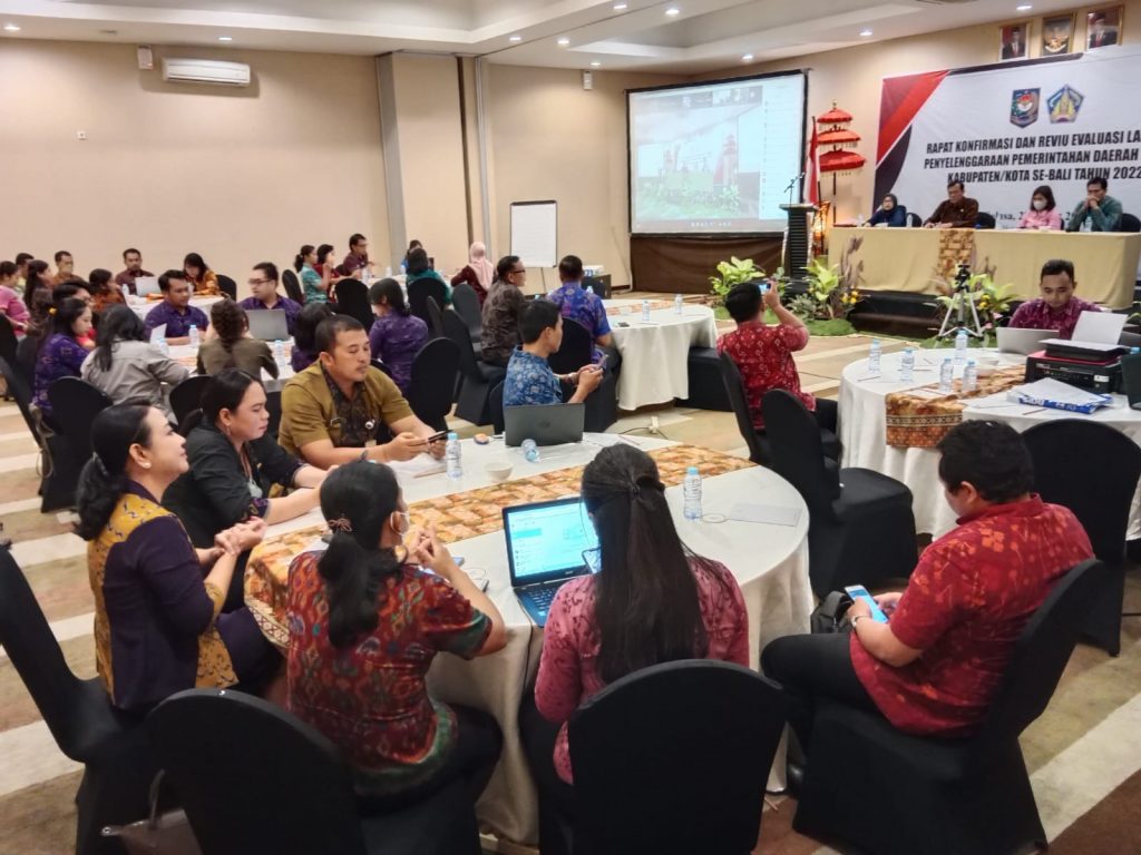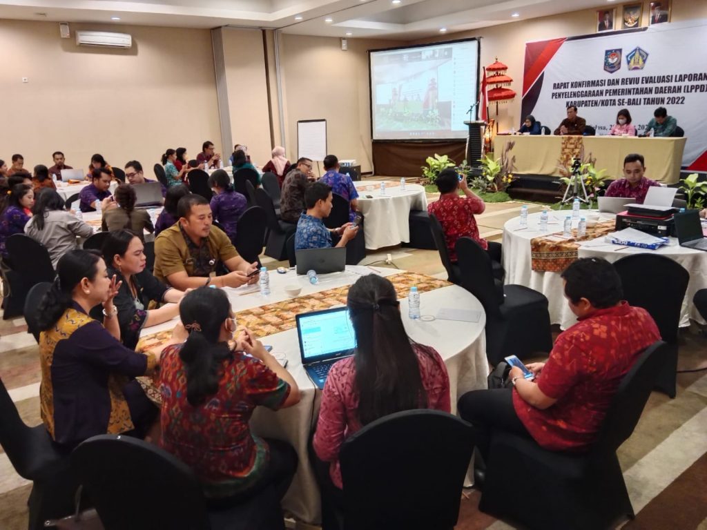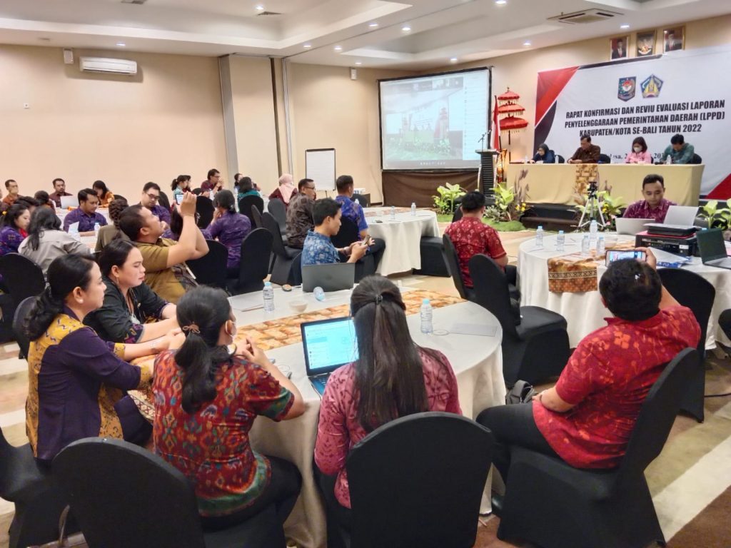 Biro Pemerintahan dan Kesejahteraan Rakyat Melaksanakan Rapat Konfirmasi dan Reviu Evaluasi Laporan Penyelenggaraan Pemerintah Daerah (LPPD) Kabupaten/Kota Se-Bali Tahun 2022 pada tanggal 28 Maret 2023