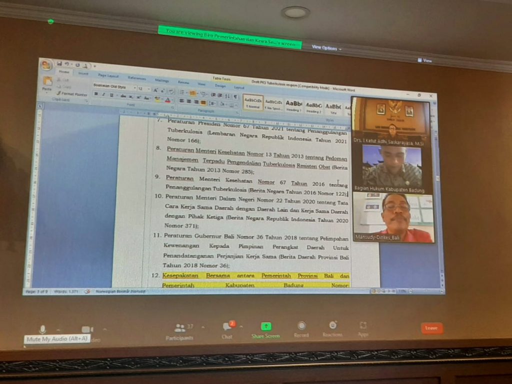 Biro Pemerintahan dan Kesejahteraan Rakyat melaksanakan rapat pembahasan draft perjanjian kerja sama antara Pemerintah Provinsi Bali dan RSUP Sanglah, Pemerintah Kab.Badung,Pemerintah Kabupaten Tabanan, Pemerintah Kabupaten Buleleng, Pemerintah Kabupaten Karangasem dan Pemerintah Kabupaten Klungkung tentang Pengendalian Tuberkulosis Resisten Obat pada Selasa, 5 Juli 2022 Bertempat di Ruang Rapat Biro Pemerintahan dan Kesra
