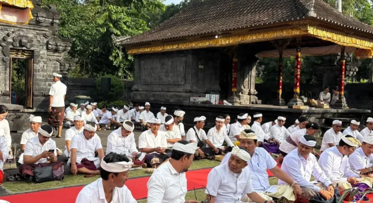 Persembahyangan bersama dalam rangka HUT ke-67 Provinsi Bali di Pura Pusering Praja Mandala Kantor Gubernur Bali pada hari jumat, 8 agustus 2025