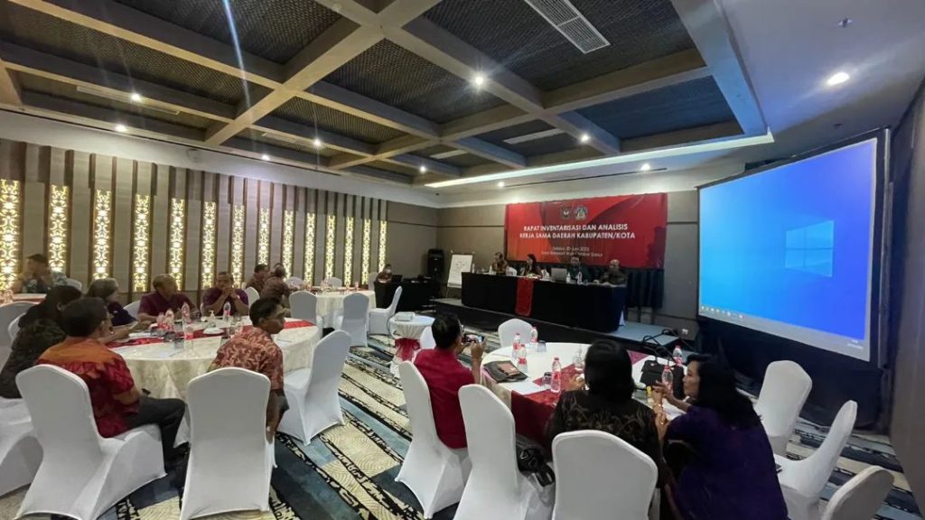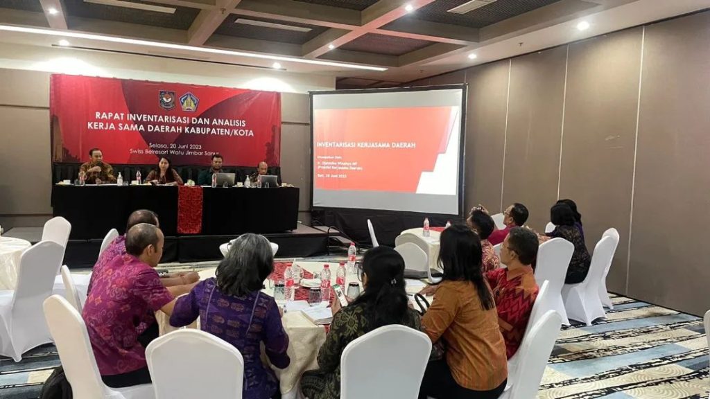 Rapat Inventarisasi dan Analisis Kerja Sama Daerah Kabupaten/Kota dalam rangka meningkatkan peran Gubernur sebagai Wakil Pemerintah Pusat bertempat di Swiss Belresort Watu Jimbar, Sanur pada hari Selasa, 20 Juni 2023