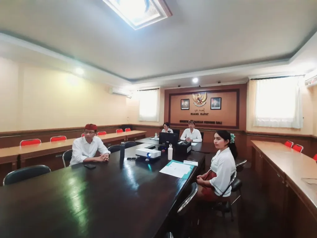 Kepala Biro Pemerintahan dan Kesejahteraan Rakyat didampingi oleh ibu Kabag Kerjasama memfasilitasi rapat Pembahasan draf Perjanjian Kerja Sama dengan Pemerintah Kota Denpasar, Pemerintah Kabupaten Badung, Pemerintah Kabupaten Gianyar dan Pemerintah Kabupaten Tabanan tentang Penyelenggaraan Angkutan Umum Perkotaan Trans Metro Dewata di Kawasan Denpasar, Badung, Gianyar dan Tabanan secara daring pada hari Kamis, 14 Agustus 2025