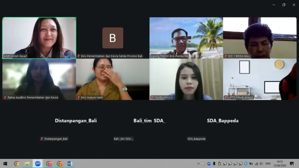 Biro Pemerintahan dan Kesejahteraan Rakyat memfasilitasi rapat Pembahasan Draft Kesepakatan Bersama antara Pemerintah Provinsi Bali dan Universitas Slamet Riyadi tentang Penyelenggaraan Tridharma Perguruan Tinggi di Provinsi Bali melalui zoom meeting pada hari Senin, 13 April 2026