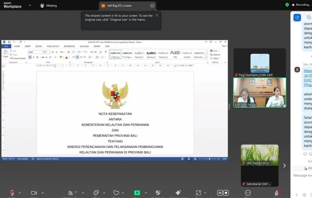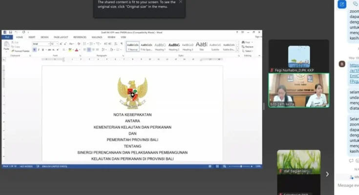 Biro Pemerintahan dan Kesejahteraan Rakyat melaksanakan kegiatan rapat pembahasan naskah Nota Kesepakatan antara Kementerian Kelautan dan Perikanan dengan Pemerintah Provinsi Bali tentang sinergi perencanaan dan pelaksanaan pembangunan kelautan dan perikanan di Provinsi Bali secara daring pada hari, rabu 23 juli 2025