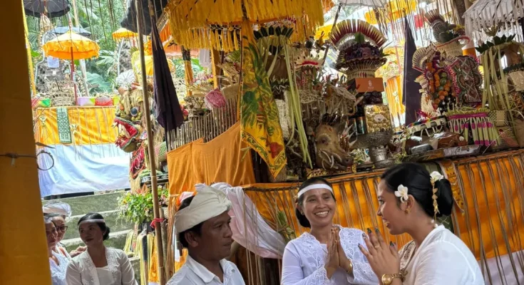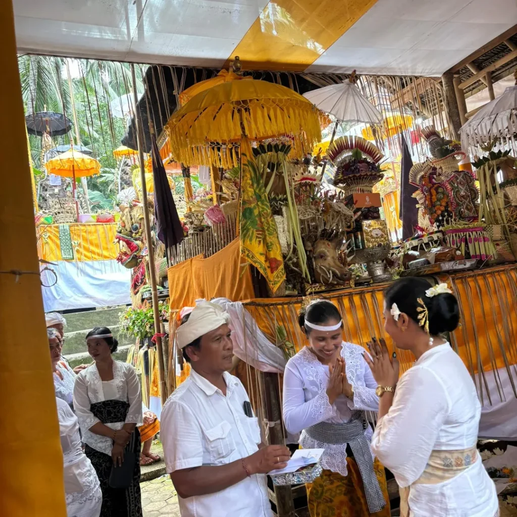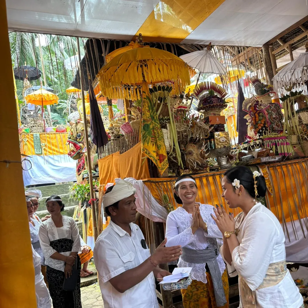 Biro Pemerintahan dan Kesejahteraan Rakyat yang diwakili oleh Kepala Bagian Kesra bersama staf menghadiri Upacara Karya Mamungkah, Ngenteg Linggih, Nubung Daging, Rsigana lan Ngingkup di Pura Dadia Dukuh Dalem Tarukan Pulasari Banjar Dinas Anyar Desa Selumbung Kec. Manggis Kab. Karangasem pada hari Kamis, 2 April 2026